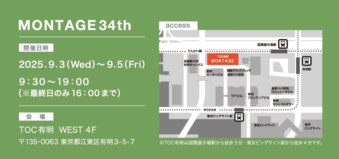 「MONTAGE」はトレンドを意識したコンセプトを設定し、会場全体に統一感を持たせた空間の提案として、インテリア・ガーデニング・アウトドアの3カテゴリーを中心とした構成で商品の魅力を最大限に活かせるインスタレーションを演出する展示会です。