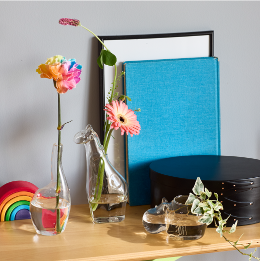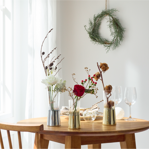 ミラーと花が飾れる機能を組み合わせてデザインした新発想の一輪挿し。