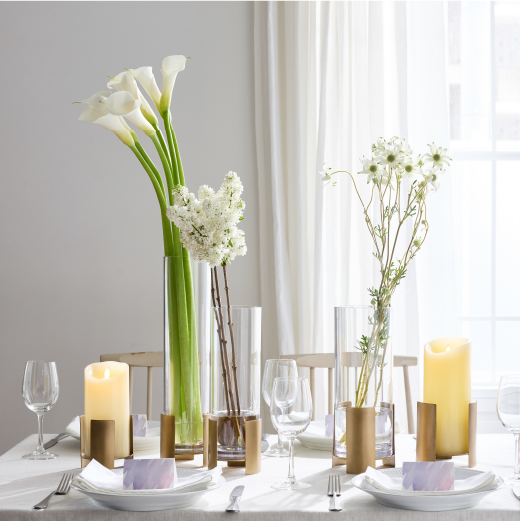天然大理石とガラスを組み合わせたスタイリッシュでモダンなフラワーベース。