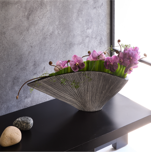 見た目は重厚感のあるストーン調!新感覚の木製のフラワーベース。