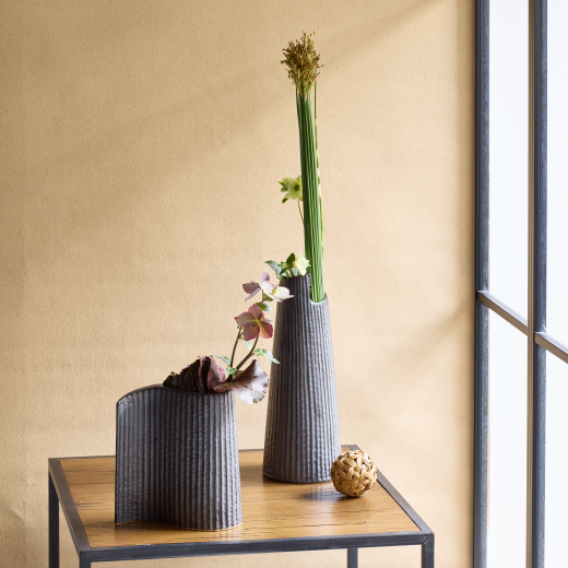 花のような形のアレンジベース。シンプルながら、繊細なレリーフに丸みのある有機的な形状が上品なデザインです。ギフトにおすすめです。