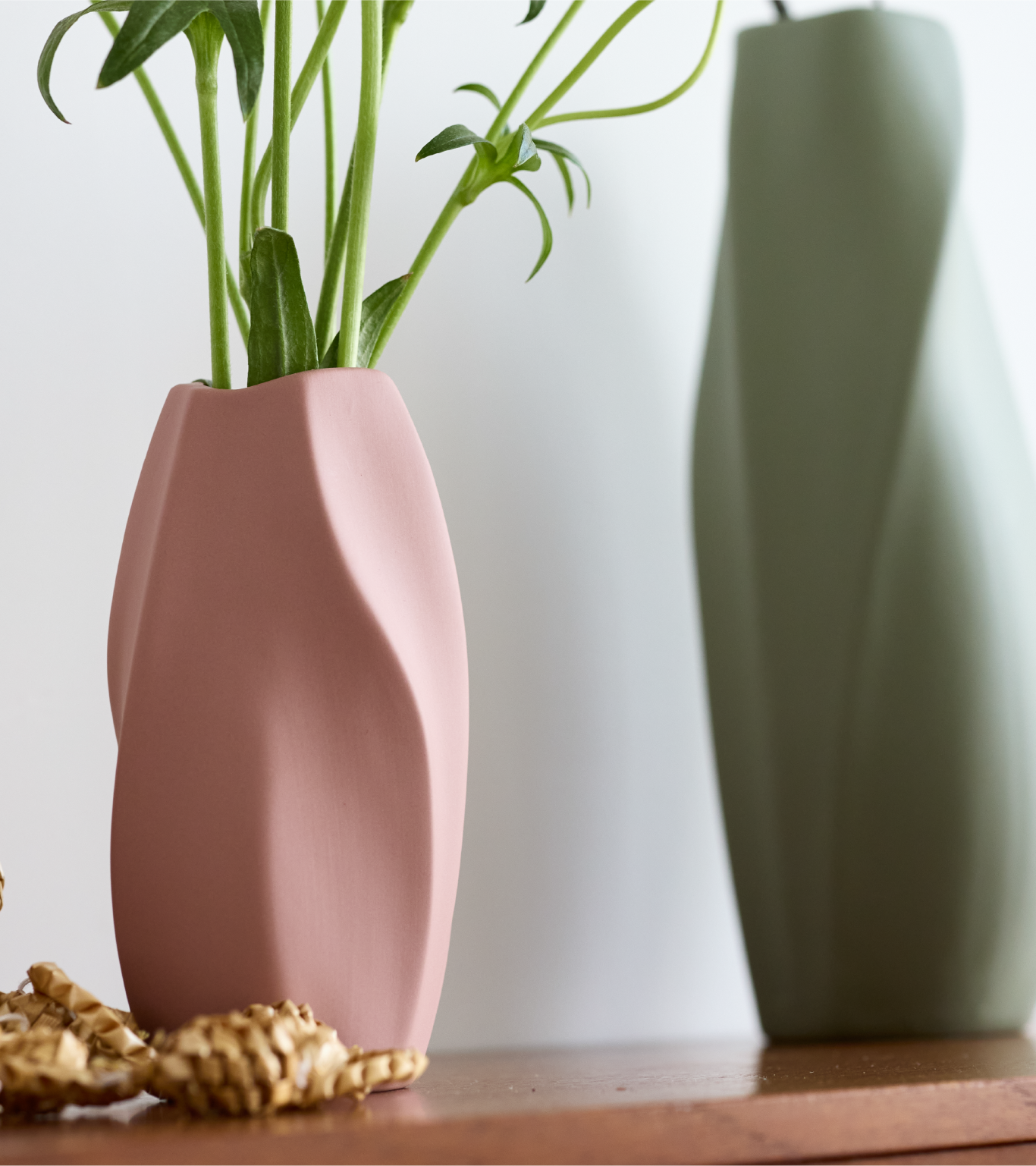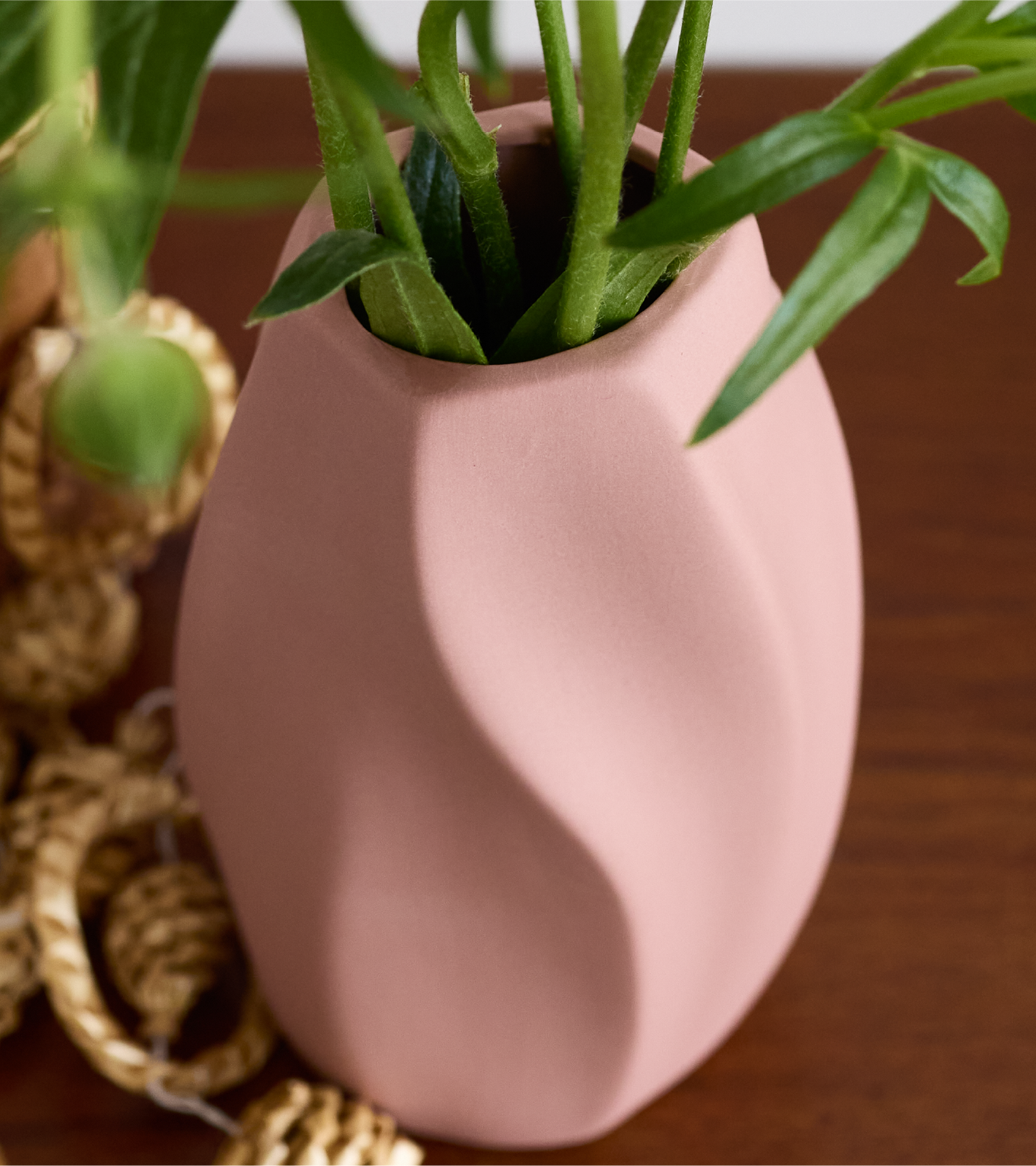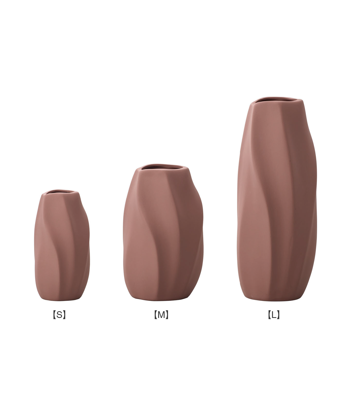 北欧モダンの空気感をまとった、ねじれのある有機的なフォルムが印象的なフラワーベース。陶器ならではのやわらかな質感と落ち着いたマットカラーが、空間に穏やかなアクセントを加えます。ミニブーケや枝ものなど幅広い花材に対応し、ガラスベースとは異なる温もりと存在感をインテリアに添える一品です。