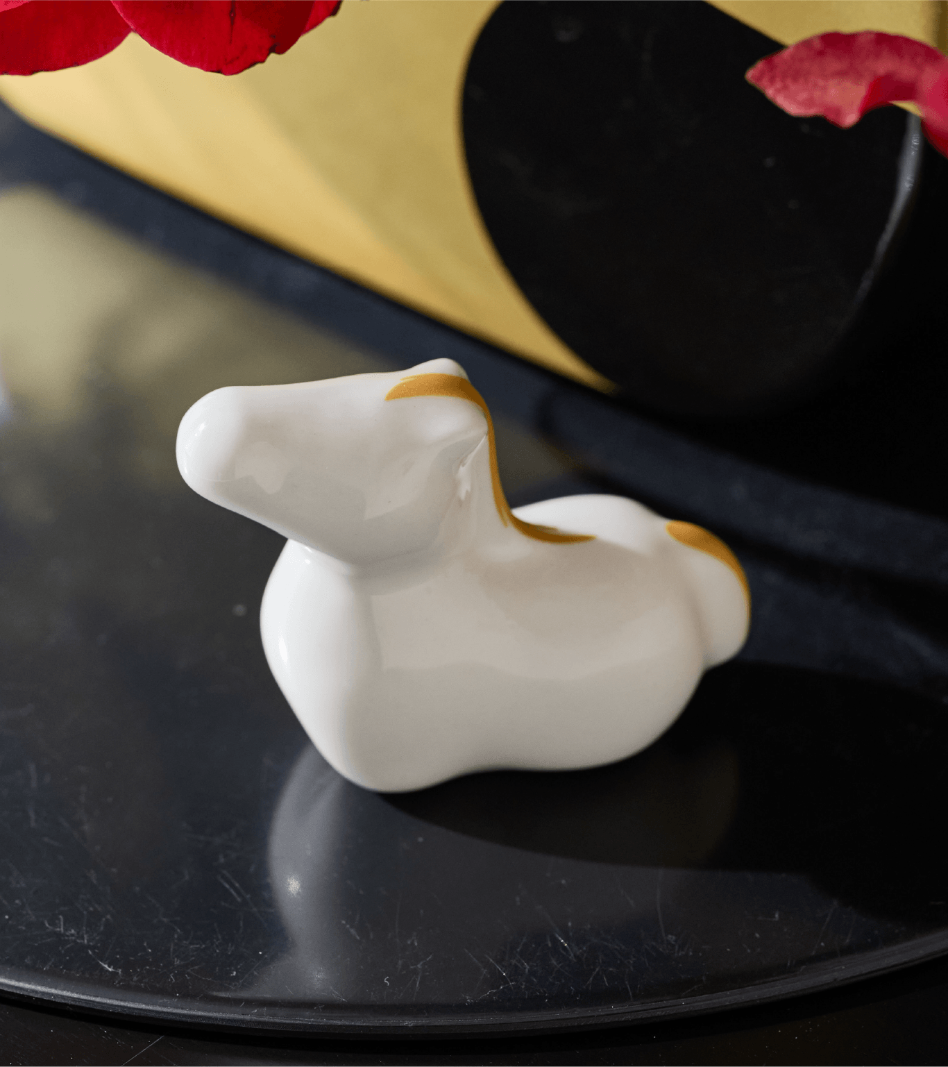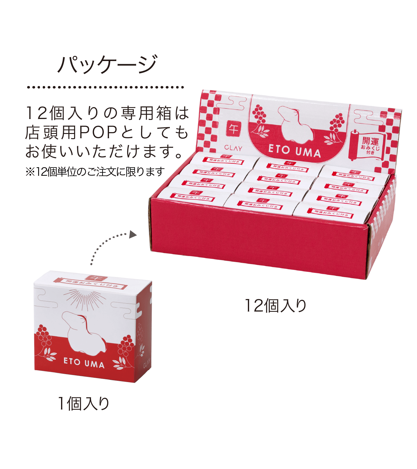 2026年干支「午」をモチーフにした、ミニマルなデザインの陶器オーナメント。やさしく丸みのあるフォルムが、現代の空間に自然と馴染みます。4か国語対応のおみくじが入っていて、海外の方へのギフトにも最適です。アレンジメントに添えて飾ったり、玄関や棚に置くだけで、さりげなく迎春の雰囲気を演出できます。